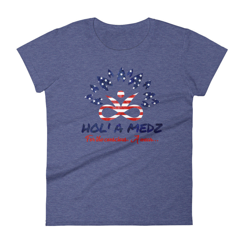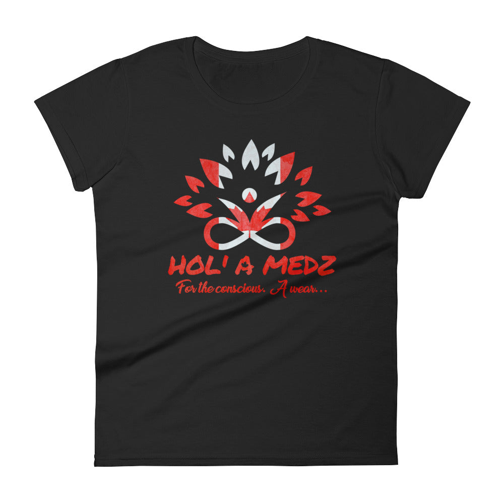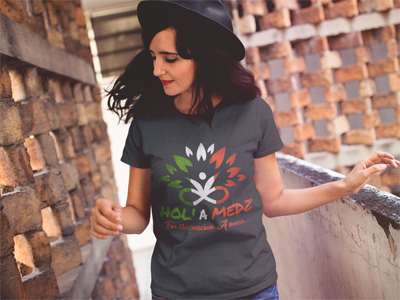 You can't help but feel great in this fashionable, feminine cut T-Shirt with the unique fabric combination. Have a classy look and share the importance of mindfulness with the meaningful print "Hol'...