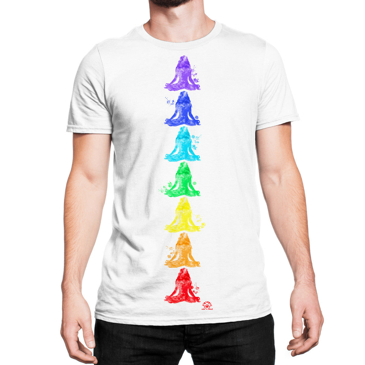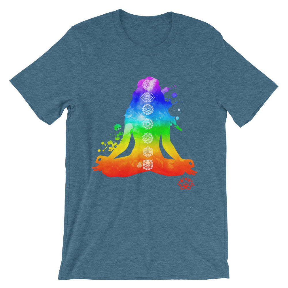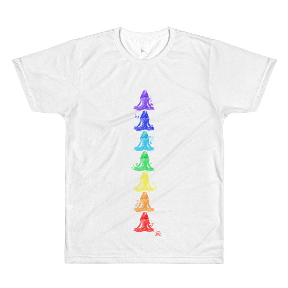 This is a comfortable and lightweight crew neck t-shirt with vibrant print "7 Chakras", It's made and printed in the USA. - 100% polyester construction...