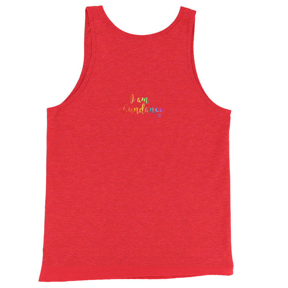 A classic, all-purpose unisex tank with the colorful and meaningful print "I am abundance". Details: - Contemporary fit - Lightweight - 100% cotton or Tri-blends:...